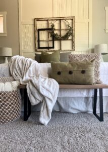 This is how to build a bench for the foot of your bed. A quick, inexpensive and easy DIY project. If you haven’t done a do it yourself project this is a simple one to