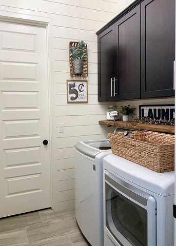Deciding to create a farmhouse laundry room was a no brainer. It is a beautiful style that is timeless and easy to adjust if you get tired of something.