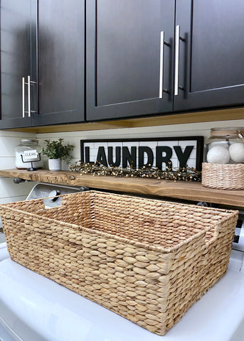 I love this farmhouse laundry sign I found. The store I purchased it from has closed but here is one that looks so cute. It would look so cute on a rustic shelf.