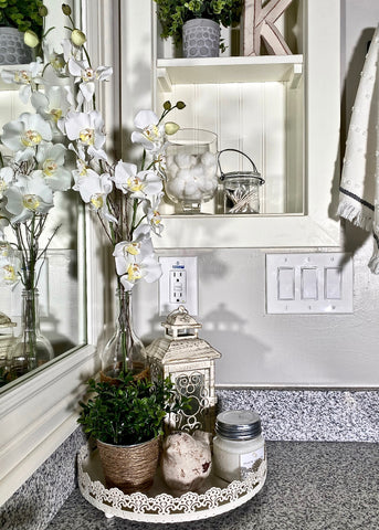 You can never go wrong with a beautiful white farmhouse tray. This tray would look amazing in so many rooms of your home.